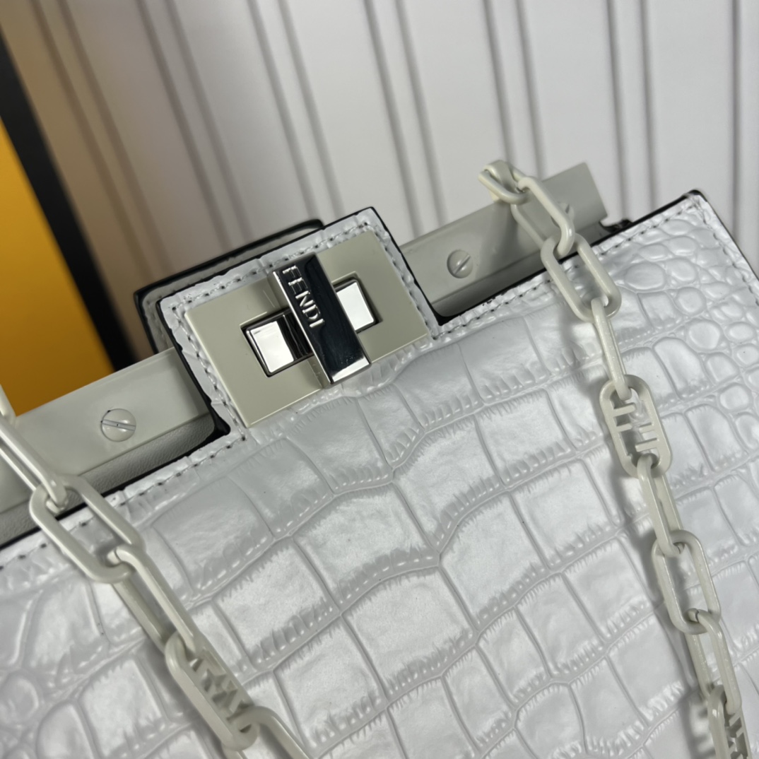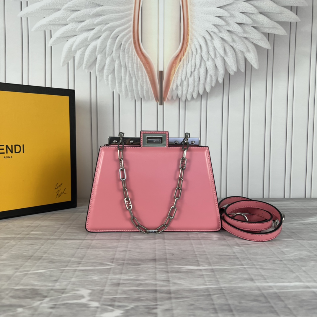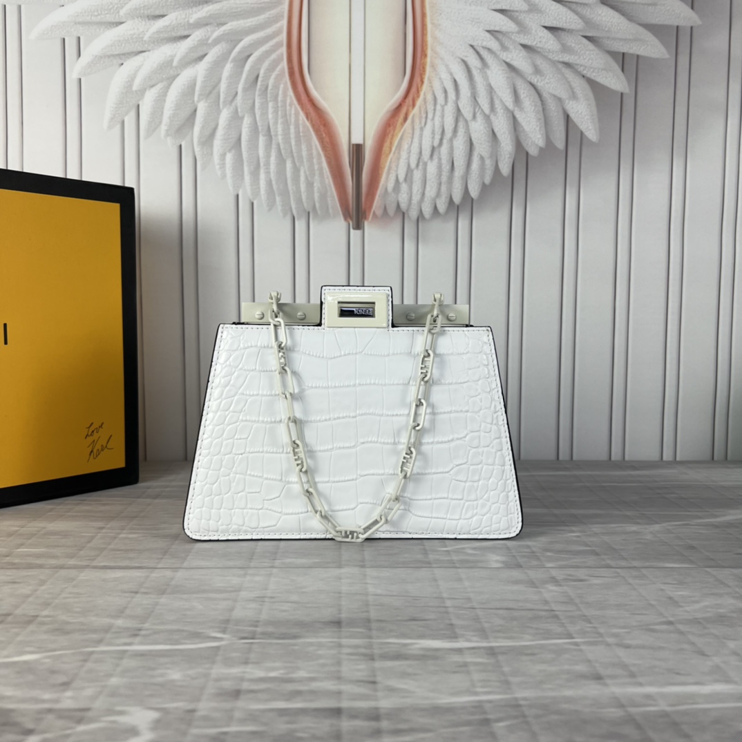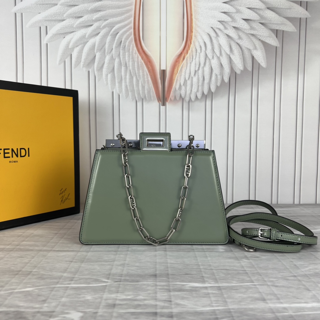 Fendi 2023SS fashion show early spring collection Milan Fashion Week stock debut, smooth top cowhide, paired with gilded hardware, Peekaboo series is the most frequently seen handbag on the runway this season, appearing in a new chain bag shape, size: 23x13x9cm, model: 5017