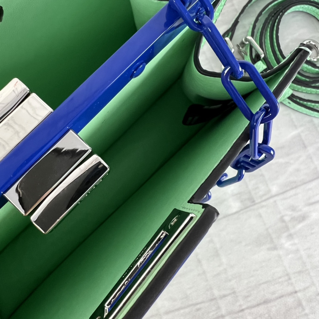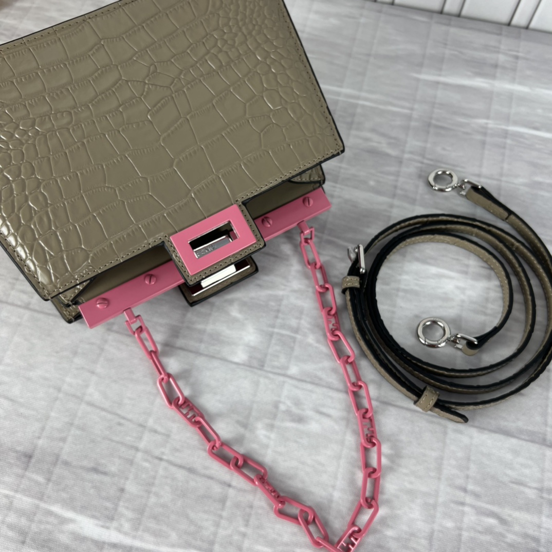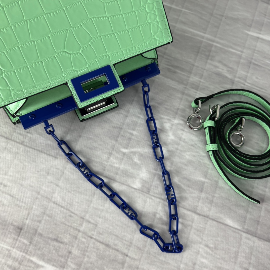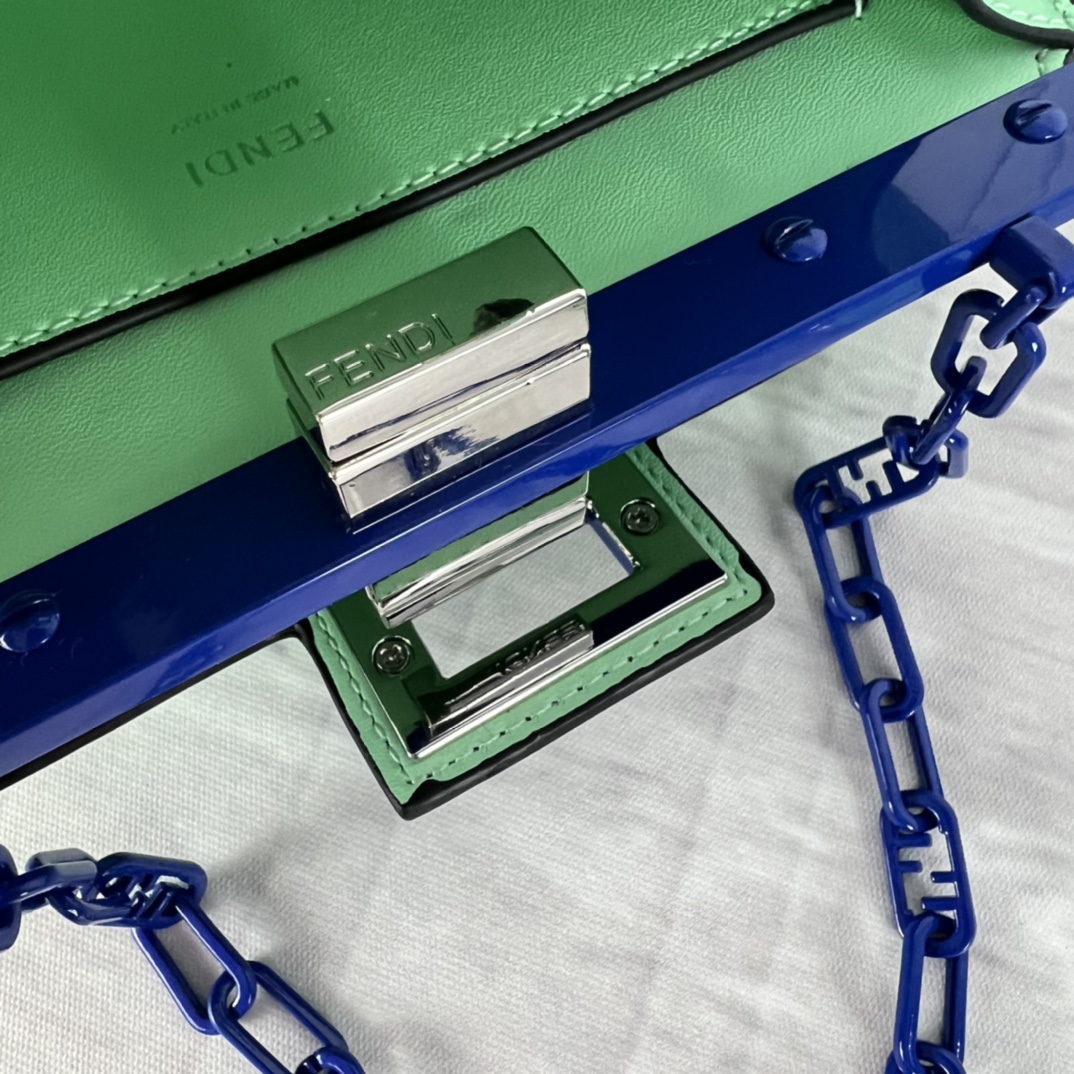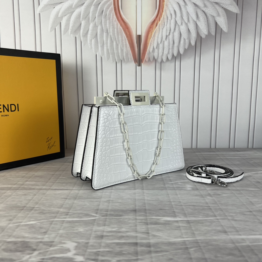 Fendi 2023SS fashion show early spring collection Milan Fashion Week stock debut, smooth top cowhide, paired with gilded hardware, Peekaboo series is the most frequently seen handbag on the runway this season, appearing in a new chain bag shape, size: 23x13x9cm, model: 5017