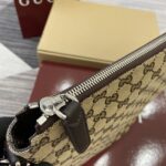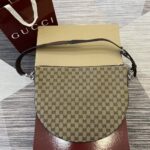 The 2025 early spring collection sincerely presents the Gucci Body double lock handbag, named after the collection design, and reinterpreted with a casual silhouette full of drape. This shoulder bag is crafted with original GG canvas in beige and dark brown, and is equipped with a D-ring on the outside for hanging various small items, making the entire style more perfect. Original GG canvas in beige and dark brown, with brown leather rolled edges, and a D-ring for attaching detachable items.