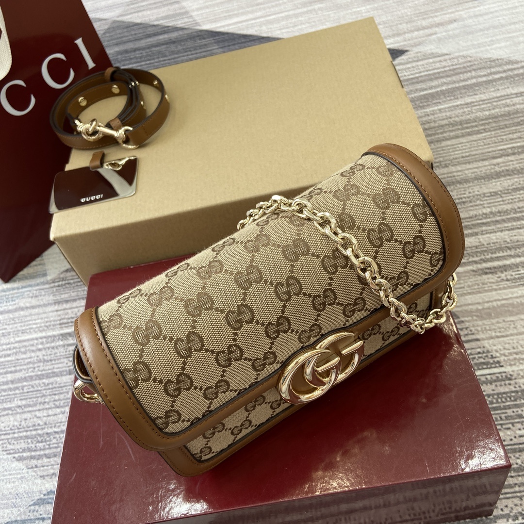 Top tier original order. Equipped with a complete set of counter packaging ‼️ The Gucci Go collection is designed specifically for sports. This shoulder bag is crafted with exquisite and lightweight GG Monogram adhesive, paired with an elegant chain strap, adding another eye-catching touch to the 2025 Spring/Summer collection. The layout inside the bag is also very practical, with a detachable mirror on the back.