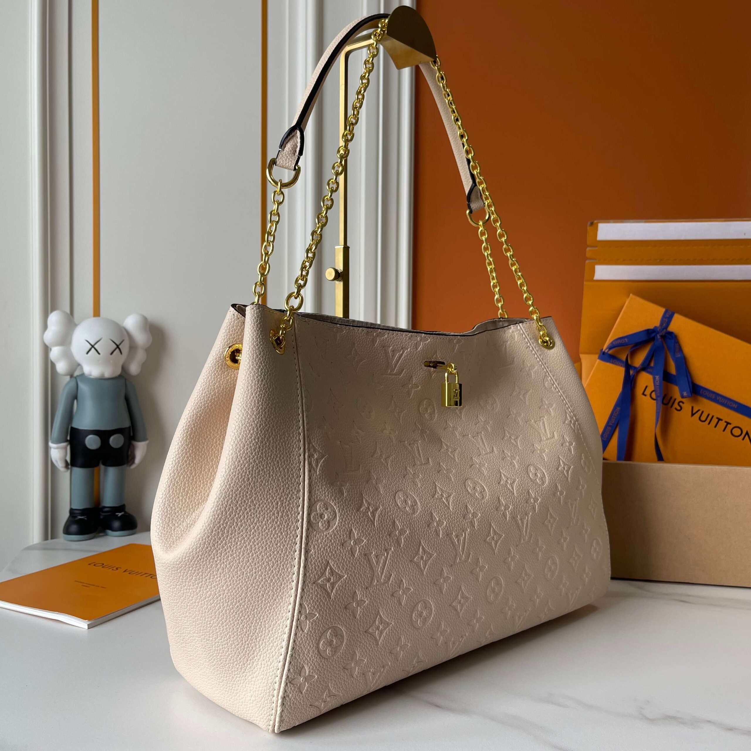 The upgraded M14414, a medium-sized Anytime handbag, traces back to the collection Promenade handbag that was born in 1988, making it an excellent choice for daily commuting and weekend travel. The Monogram Empreinte leather bag is embellished with glossy metal pieces, and the LV padlock can be hung on the sliding chain shoulder strap, making it easy to explore various styling possibilities and carrying methods.