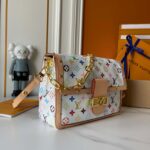 Coated canvas production, showcasing a casual daily style. The handbag is adorned with rainbow tones reinterpreted by world-renowned Japanese artist Takashi Murakami Monogram The pattern is rich and playful, and the iconic bag is outlined with natural cowhide trim, accompanied by gold on the front LV Lock buckle, adding a unique brand atmosphere. The handbag is equipped with a zipper pocket inside, which is particularly practical. 28 x 20 x 11 Centimeters (length) x height x Width)